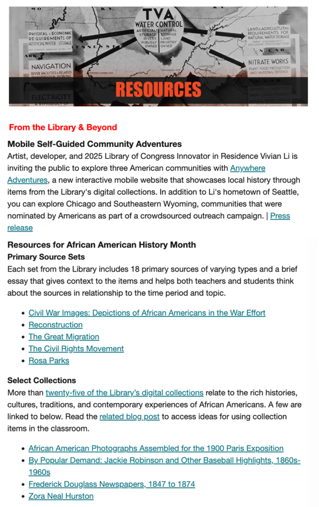 Get content you won’t find anywhere else—news, resources, PD + other opportunities & more—with this monthly curated collection of updates from the Library of Congress Teaching with Primary Sources (TPS)…