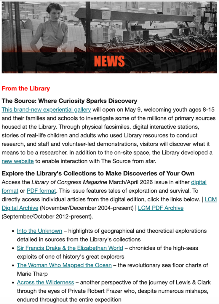 Get content you won’t find anywhere else—news, resources, PD + other opportunities & more—with this monthly curated collection of updates from the Library of Congress Teaching with Primary Sources (TPS) program and the TPS Consortium